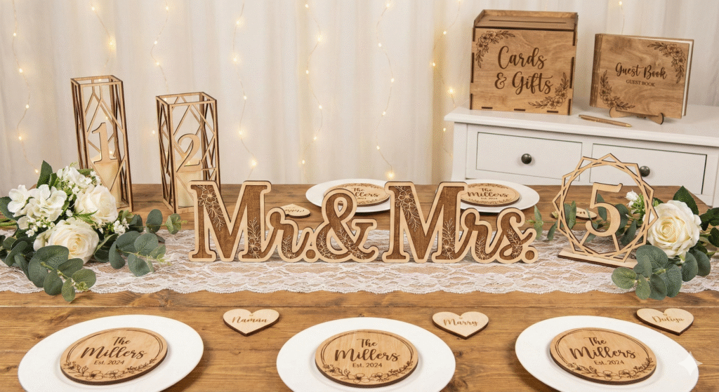 🌿 Magnet de Mariage « Arche Bohème » en Bois Personnalisé