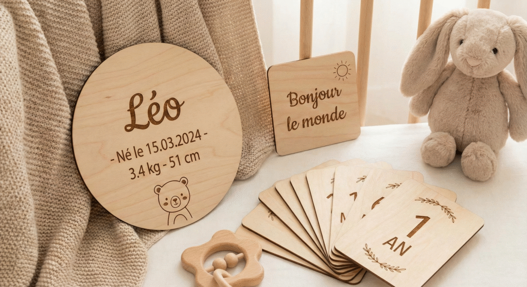 🐻 Boule de Noël Personnalisée en Bois – Souvenir « Mon Premier Noël »