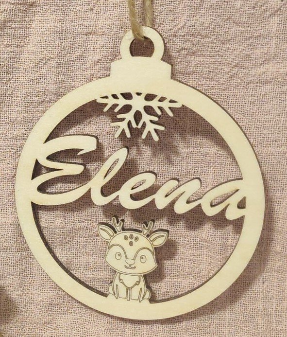 🎄 Boule de Noël Personnalisée en Bois « Cerf Enchanté » – Cadeau Unique