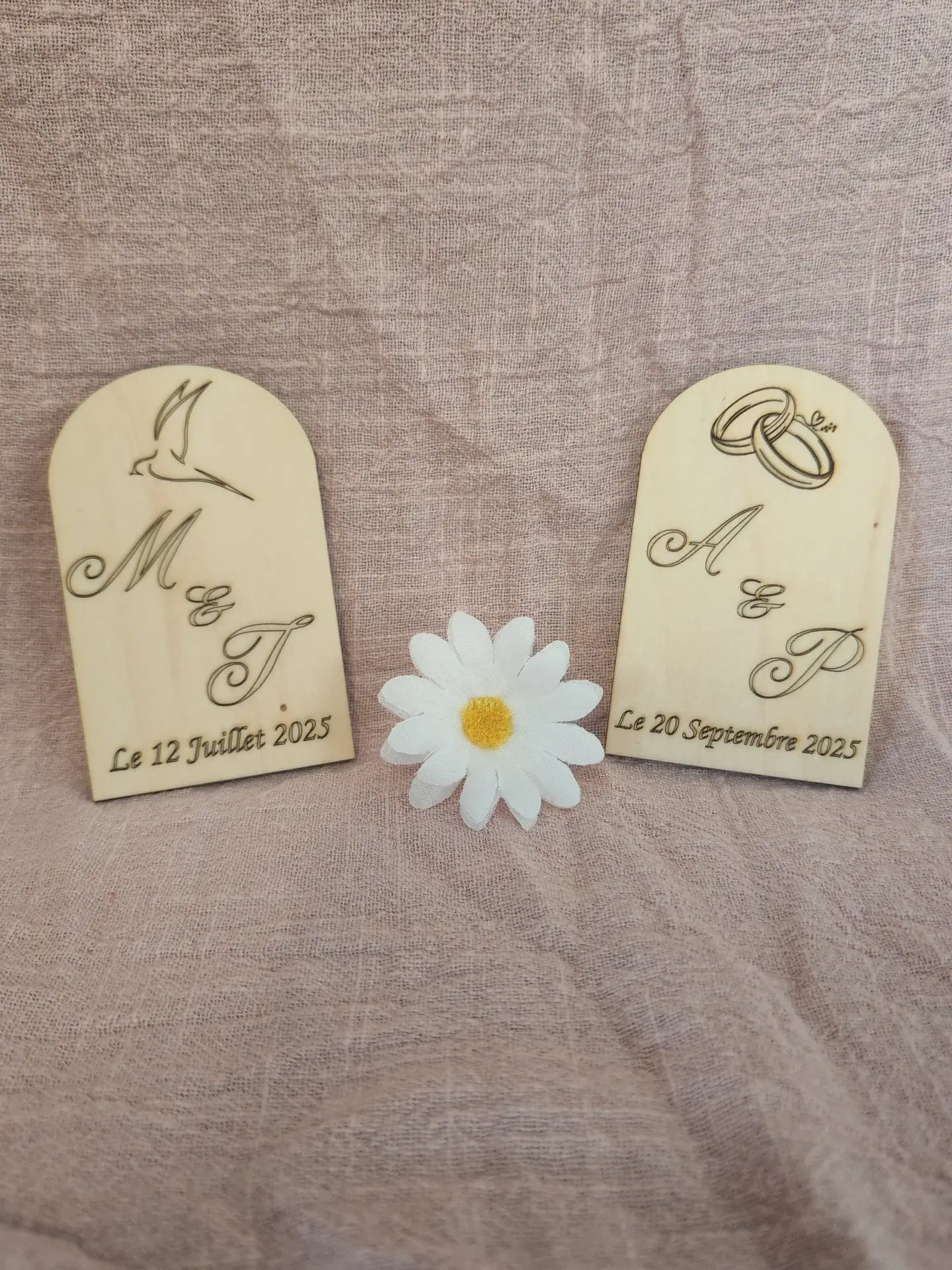 La Date Mémorable : Pour que personne n’oublie cet instant magique, la date de votre mariage est délicatement inscrite sur le bas du magnet, soulignant l’événement avec finesse.